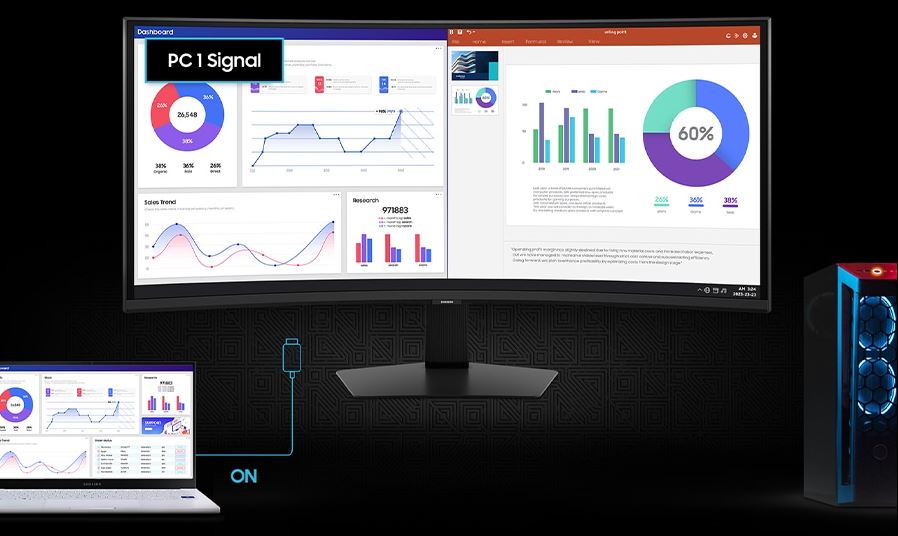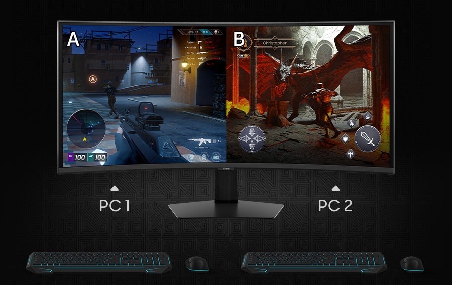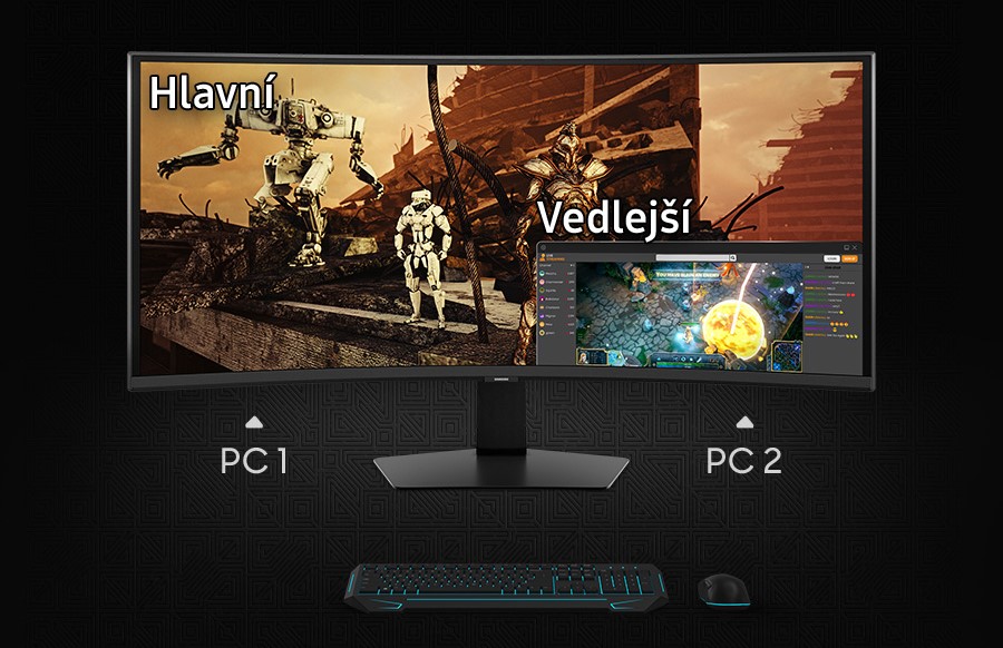 Spravuj veškerý obsah a přesouvej více oken na jedné obrazovce. Režim obraz v obrazu (Picture-in-Picture) ti umožní na hlavním displeji zobrazit hned dva různé vstupy současně – například chaty a videa nebo samotnou hru a tipy pro její hraní.