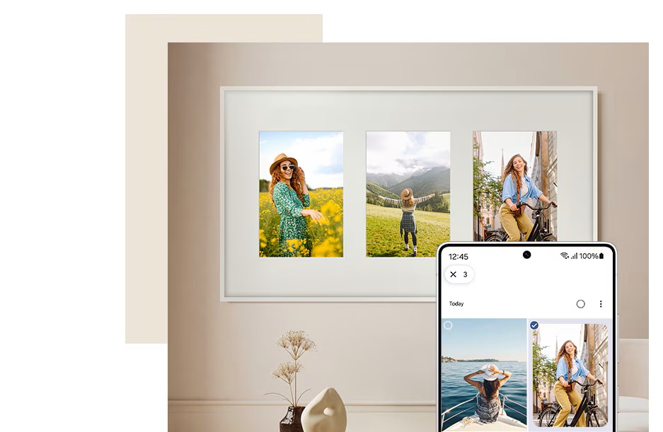 Vystav své fotografie a sdílej zážitky jednoduchým nahráním z platformy Fotky Google. Vše, co pro to musíš udělat, je propojit The Frame Pro s aplikací SmartThings a obrázky z ní stáhnout.