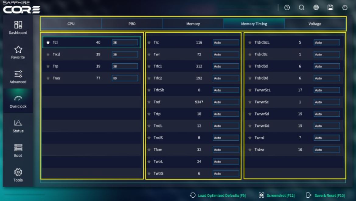 V sekci Přetaktování jsou v horním menu vybrány nejdůležitější možnosti, které hráčům umožňují rychle nakonfigurovat nastavení. V možnosti Časování paměti jsou všechna časování rozdělena do 1., 2. a 3. časování a všechna časování paměti jsou zobrazena na jedné stránce. Kliknutím na výběrové pole můžete přímo zadat čísla a dokončit zadávání parametrů.