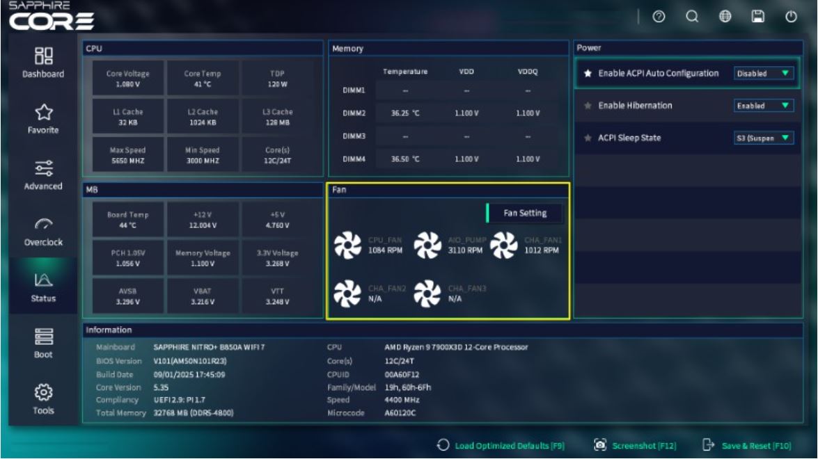 Například v možnosti Ventilátor po kliknutí na Nastavení ventilátoru se zobrazí informace, jako je aktuální využití ventilátoru a teplota. K dispozici jsou čtyři přednastavené profily rychlosti ventilátoru (Standardní, Tichý, Výkonný, Plná rychlost a Uživatelsky definovaný), které jsou optimalizovány na základě zpětné vazby od mnoha hráčů. Uživatelé si samozřejmě mohou také přizpůsobit vlastní nastavení a vytvořit křivku rychlosti ventilátoru přizpůsobenou konkrétně jejich potřebám.