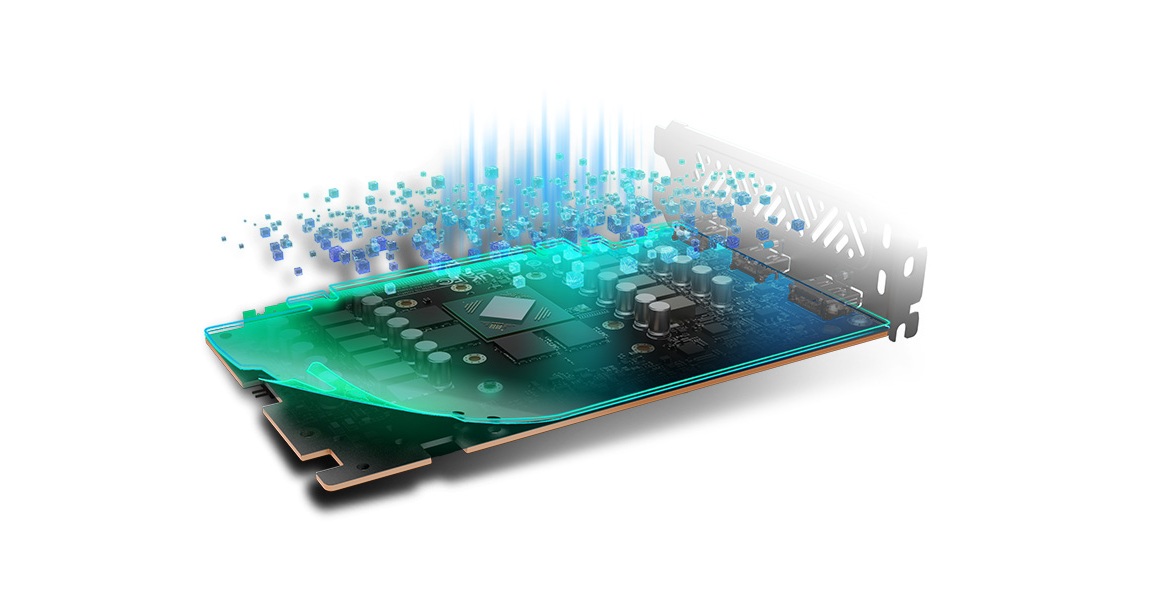 GPU je namontováno na 10vrstvé desce s vysokou hustotou, 2 oz mědí a vysokou hodnotou TG, aby vyhovovalo vysoké rychlosti, vysokému proudu a zvýšeným požadavkům na napájení GPU a paměti a zajistilo vysokou stabilitu PCB během provozu.