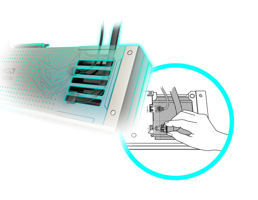 Funkce skrytého připojení napájení bez problémů skrývá externí napájecí kabely a zajišťuje čistý vzhled vaší sestavy bez nepořádku. Je navržen pro maximální estetiku a organizaci a zajišťuje, že vaše grafická karta vynikne bez jakýchkoli viditelných rušivých prvků - ideální pro prezentaci elegantní, profesionální sestavy.