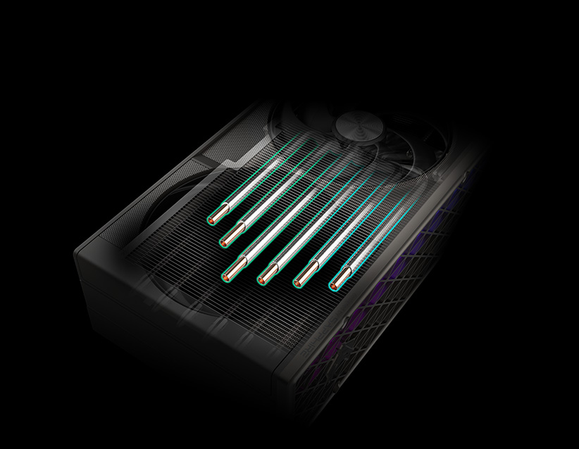 Integrované chlazení je pokročilé řešení tepelného managementu navržené tak, aby zajišťovalo účinný odvod tepla ze všech kritických součástí grafické karty. Tato inovativní konstrukce zajišťuje přímý kontakt s grafickým procesorem, paměťovými moduly a moduly VRM a poskytuje rovnoměrnou tepelnou regulaci. Díky řešení všech hlavních zdrojů tepla pomáhá integrovaný chladicí modul udržovat stabilní provozní teploty, čímž zlepšuje celkový výkon a spolehlivost systému. Je ideální pro náročné pracovní zátěže, jako je hraní her, tvorba obsahu a přetaktování, a zajišťuje optimální tepelnou účinnost při dlouhodobém používání.