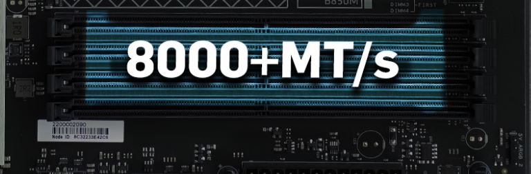 Disponuje 4 sloty, dvoukanálovým designem s podporou přetaktování paměti na 8000+MT/s. Nezávislé uspořádání obvodů snižuje odpor signálu a rušení, čímž zajišťuje vyšší stabilitu a spolehlivost.