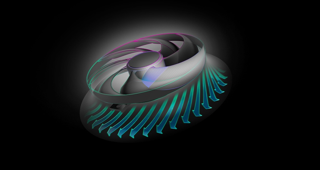Konstrukce chlazení Free Flow je přizpůsobena pro axiální ventilátorové systémy a je vybavena pokročilým modulem žebrování chladiče, který optimalizuje proudění vzduchu. Snižuje turbulence a efektivně usměrňuje proudění vzduchu, čímž maximalizuje odvod tepla a zajišťuje konzistentní výkon i při vysokém tepelném zatížení.