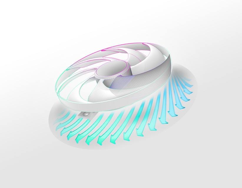 Konstrukce chlazení Free Flow je přizpůsobena pro systémy s axiálními ventilátory a obsahuje pokročilý modul žeber chladiče, který optimalizuje cesty proudění vzduchu. Snížením turbulencí a účinným usměrňováním vzduchu maximalizuje odvod tepla a zajišťuje konzistentní výkon i při velkém tepelném zatížení.