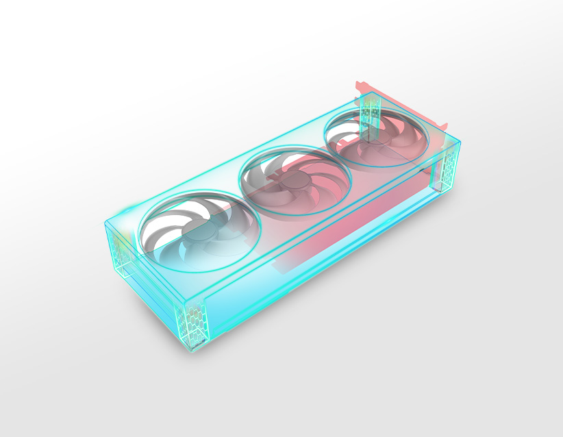 Integrované chlazení je pokročilé řešení tepelného managementu navržené tak, aby zajišťovalo účinný odvod tepla ze všech kritických součástí grafické karty. Tato inovativní konstrukce zajišťuje přímý kontakt s grafickým procesorem, paměťovými moduly a moduly VRM a poskytuje rovnoměrnou tepelnou regulaci. Díky řešení všech hlavních zdrojů tepla pomáhá integrovaný chladicí modul udržovat stabilní provozní teploty, čímž zlepšuje celkový výkon a spolehlivost systému. Je ideální pro náročné pracovní zátěže, jako je hraní her, tvorba obsahu a přetaktování, a zajišťuje optimální tepelnou účinnost při dlouhodobém používání.