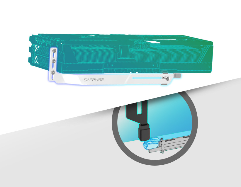 Nově integrované logo SAPPHIRE s ARGB LED diodami poskytuje možnosti přizpůsobení pro individuálnější estetickou integraci grafické karty do sestavy. Jednoduše použijte Glow! Funkce v softwaru SAPPHIRE TriXX a vytvořte dokonalé řešení osvětlení.
