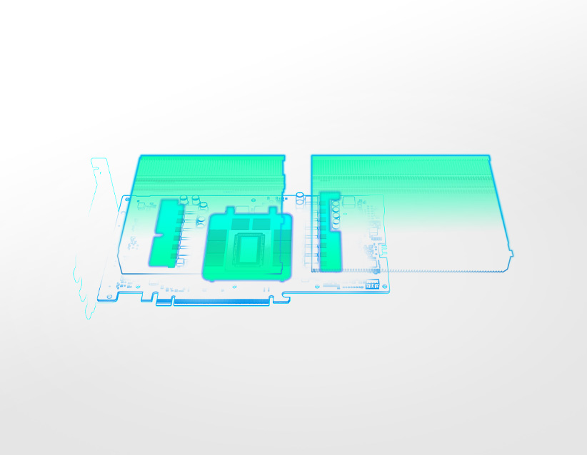 Grafický procesor je namontován na 12vrstvou desku plošných spojů s vysokou hustotou, 2oz mědí a vysokým obsahem TG, která odpovídá vysoké rychlosti, vysokému proudu a zvýšeným nárokům na napájení grafického procesoru a paměti a zaručuje vysokou stabilitu desky plošných spojů během provozu.