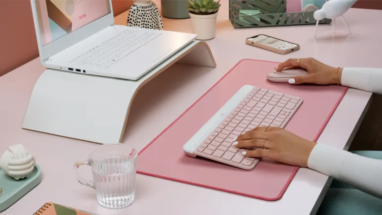 Nízkoprofilové klávesy uchycené technologií Scissor umožňují plynulé, snadno návykové psaní podobně jako na notebooku. Ladný, zaoblený tvar myši skvěle padne do levé i pravé ruky.
