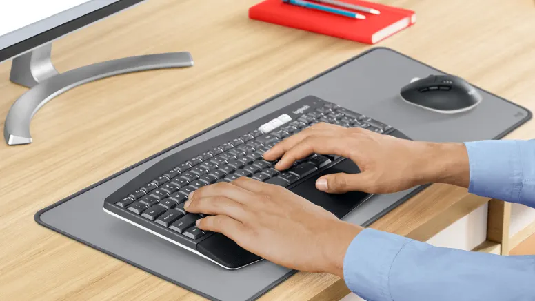 Mírně zaoblený tvar klávesnice napomáhá zaujetí přirozené polohy při psaní. Klávesnice plnohodnotné velikosti disponuje snadno návykovým rozvržením – není třeba měnit svůj styl psaní. Velká polstrovaná opěrka zápěstí je vyrobená z měkkého, a zároveň houževnatého materiálu, který při psaní poskytne zápěstí dokonalou oporu. Pomáhá zápěstí navést do vyšší polohy, což snižuje tlak a únavu ruky.