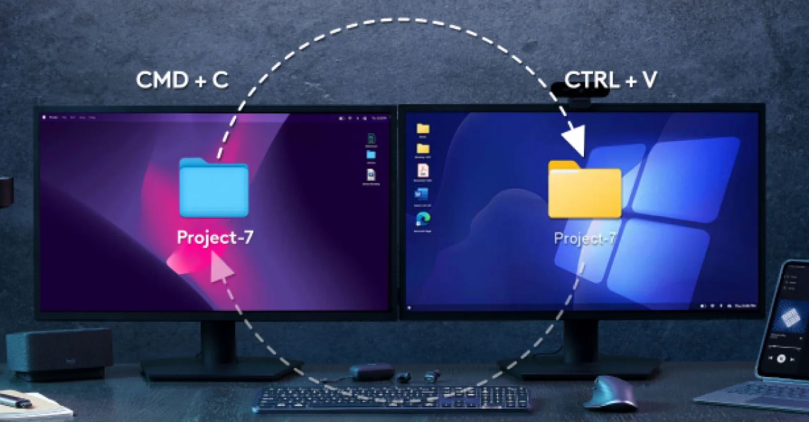 Spárujte MX Keys S Combo pro práci na více počítačích a v různých operačních systémech – a přenášejte mezi nimi text, obrázky a soubory. Stačí zkopírovat na jednom a vložit na druhém.