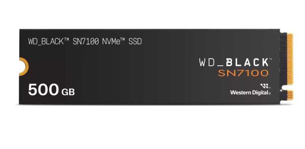 SSD disk WD BLACK SN7100 NVMe™ je vybaven rozhraním PCIe® Gen4 s novou generací pamětí TLC 3D NAND společnosti Western Digital® a je navržen tak, aby poskytoval rychlost a energetickou účinnost pro potřeby opravdových hráčů na cestách.