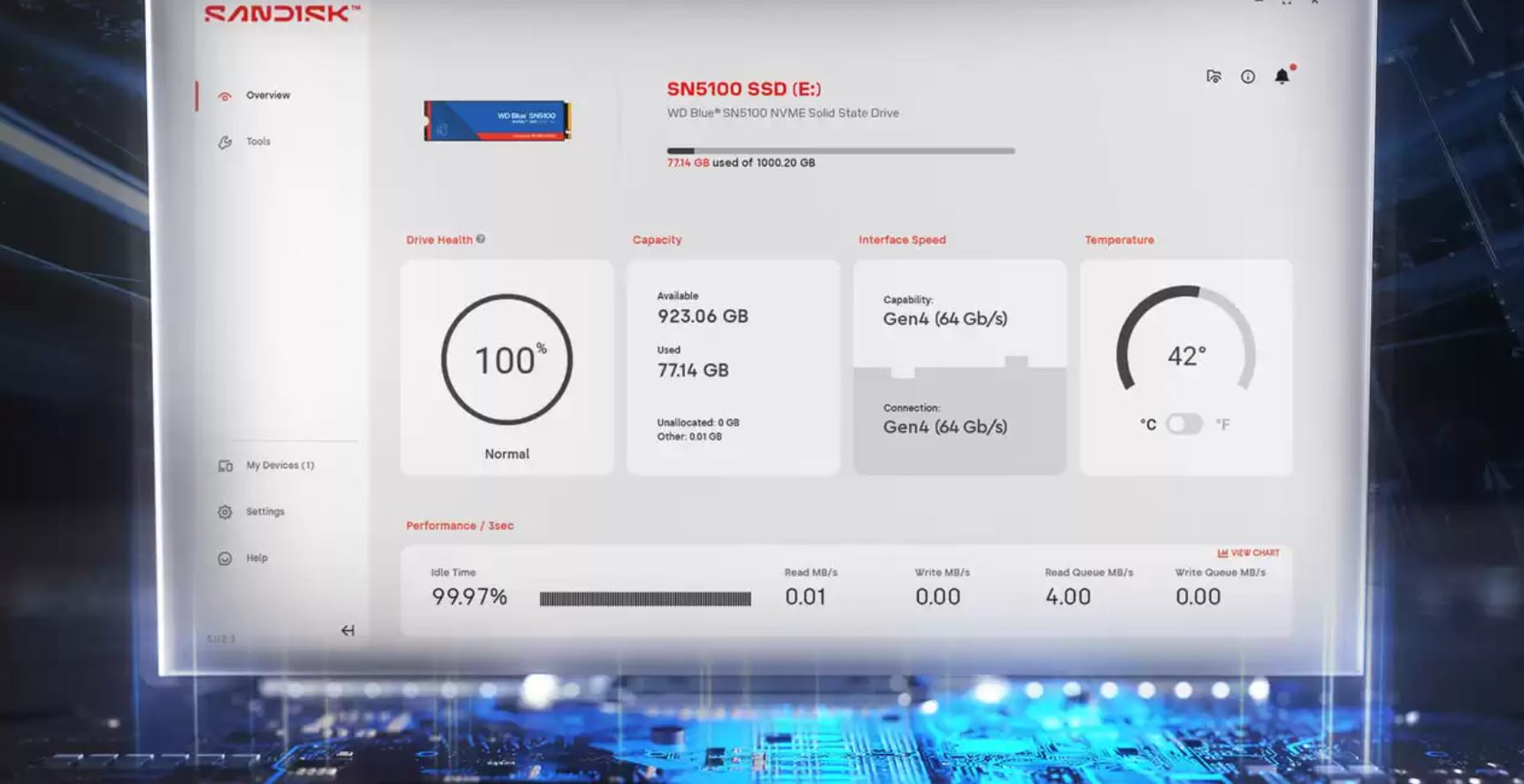 Sledujte výkon svého SSD disku a kontrolujte jeho aktualizace pomocí aplikace SANDISK Dashboard, kterou si můžete stáhnout.