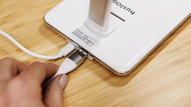 Lampička umožňuje kabelové nabíjení přes vestavěný konektor USB i bezdrátové nabíjení. Zařízení musí podporovat bezdrátové nabíjení.