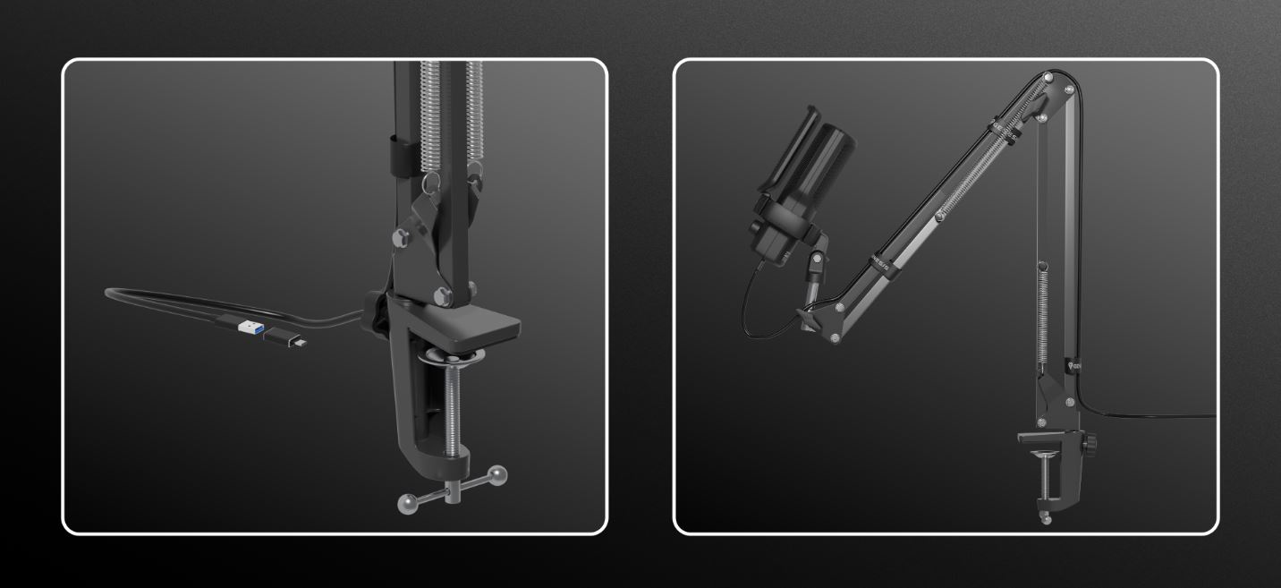 GENESIS Radium 251 není jen mikrofon - je to kompletní sada připravená k použití. Na rozdíl od modelu Radium 250 zde najdete robustní mikrofonní rameno, které vám umožní umístit mikrofon libovolným způsobem, aniž by zabíral cenné místo na stole. Získáte tak více místa pro myš, klávesnici nebo další příslušenství. Získáte také pop filtr, který redukuje nepříjemné "rázové hlasy" a zlepšuje čistotu vašich nahrávek. Svazky na kabely vám zase pomohou udržet pořádek a zabrání zamotání kabelů.