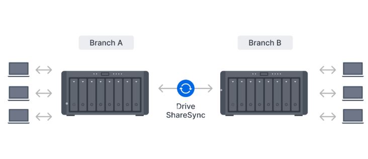 Zlepšete efektivitu pracovních postupů a sladění týmů mezi datovými servery pomocí automatické jednosměrné nebo obousměrné synchronizace site-to-site. Soubory a složky se průběžně aktualizují mezi servery, takže všichni mohou spolupracovat, ať už doma, v kanceláři nebo na různých pobočkách – to vše při zachování plné kontroly nad vašimi daty.