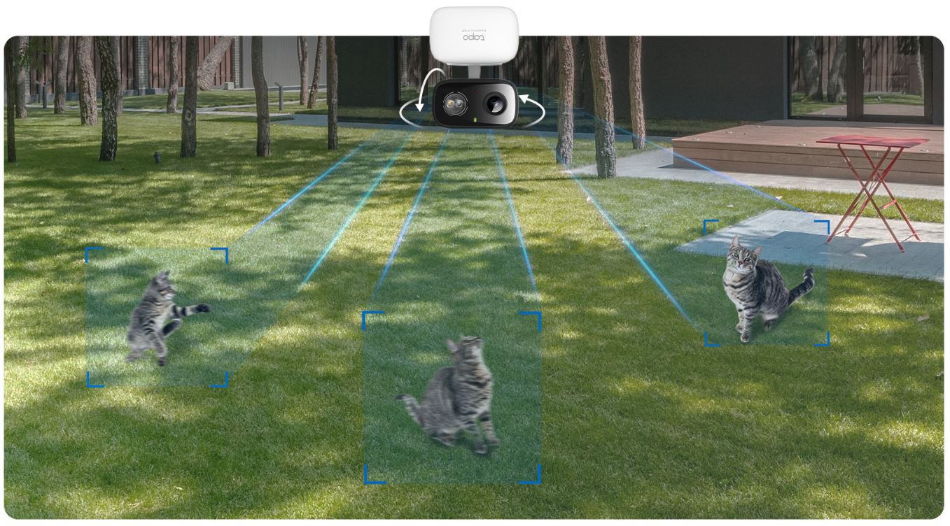 Při detekci pohybové aktivity sleduje a sleduje osoby a domácí zvířata, aby je měla na očích.