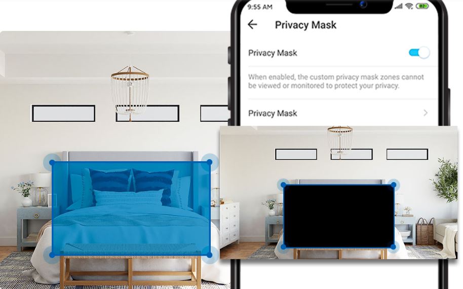 Nastavením přizpůsobitelných blokovacích zón zamezíte nahrávání určitých míst, abyste se nemuseli obávat úniku osobních informací.