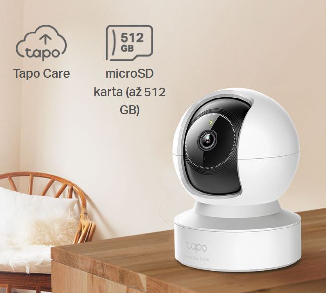 Nahraná videa můžete ukládat na kartu microSD (až 512 GB) nebo pomocí služeb cloudového úložiště Tapo Care.