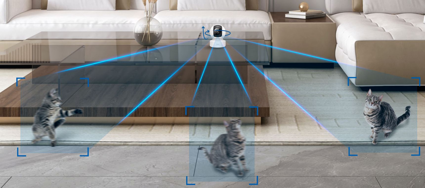 Při detekci pohybové aktivity sleduje a sleduje objekt tak, aby byl stále v dohledu.