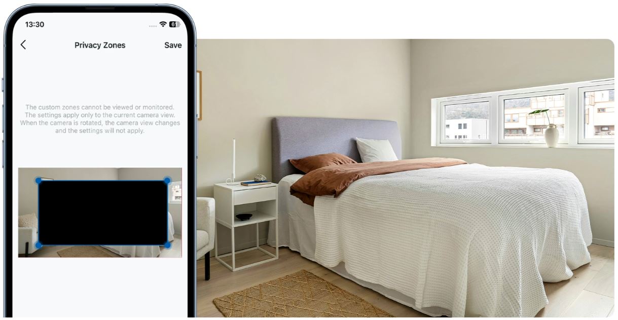 Nastavením přizpůsobitelných blokovacích zón zamezíte nahrávání určitých míst, takže se nemusíte obávat úniku osobních momentů.