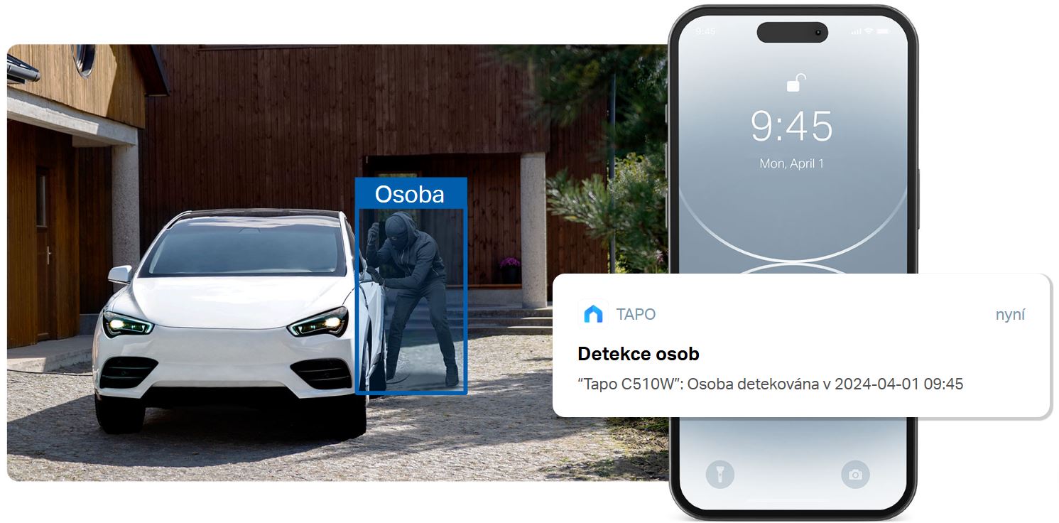 Chytrá umělá inteligence přesně identifikuje osobu, snižuje falešné poplachy a posílá oznámení v reálném čase prostřednictvím aplikace Tapo.