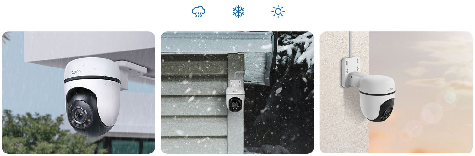Tapo C510W je chráněna proti proudům vody a prachu s krytím IP65. Funguje dobře v dešti, sněhu, prachu i horku.