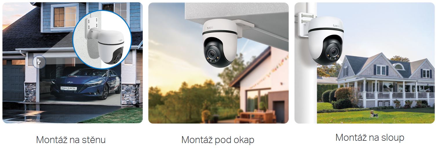 Tapo C510W podporuje více možností instalace. Kameru můžete nainstalovat na stěnu, pod okap nebo na sloup. Monitorujte oblast, na které Vám nejvíce záleží.