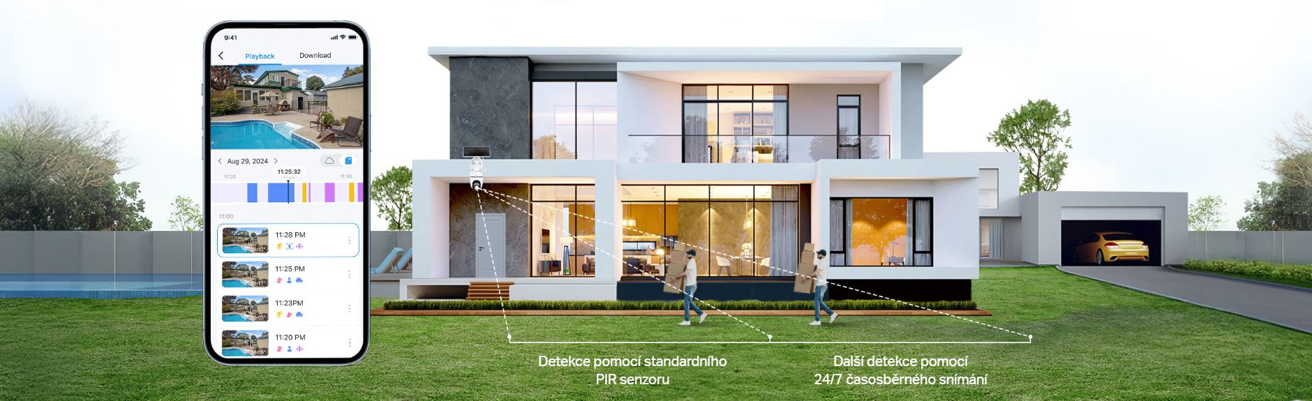 Nepřetržité snímání 24/7, detekce s větším pokrytím