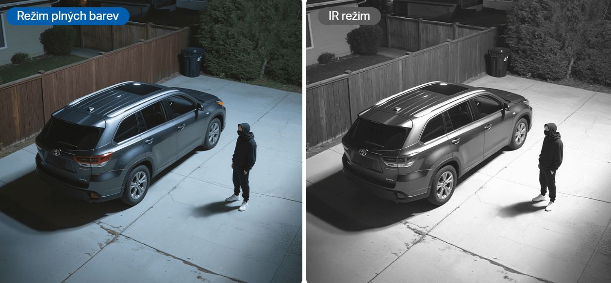 Vyberte si mezi černobílým IR nebo plně barevným režimem pomocí vestavěných reflektorů.