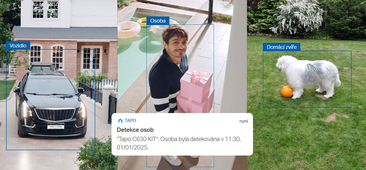 Inteligentní AI přesně identifikuje osoby, domácí zvířata a vozidla, čímž snižuje počet zbytečných oznámení. Automaticky sleduje objekty, jak se pohybují, s 360° horizontálním pokrytím.