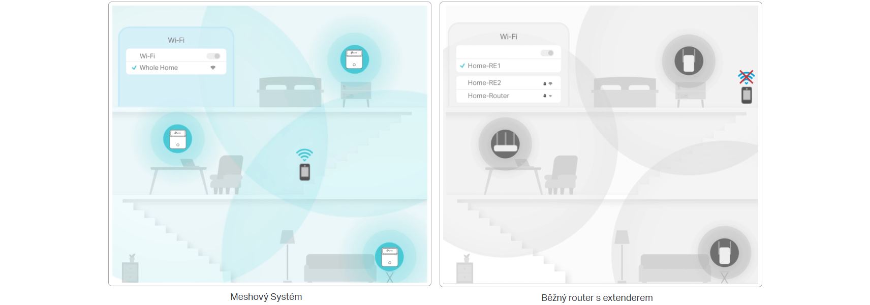 Všechny jednotky spolupracují a tvoří jednu společnou síť. Když se budete pohybovat v domě, vaše mobilní zařízení se automaticky připojí k nejrychlejší jednotce a vytvoří tak skutečně bezvýpadkový Wi-Fi zážitek.