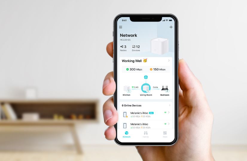 HC220-G5, vybavený technologií EasyMesh, poskytuje silný signál WiFi v každém rohu vašeho domova. Bezdrátová připojení a volitelný Ethernet backhaul spolupracují na propojení každé jednotky a poskytují ještě vyšší rychlost sítě a skutečně bezproblémové pokrytí. Chcete větší pokrytí? Jednoduše přidejte další HC220-G5, kdykoli budete chtít.