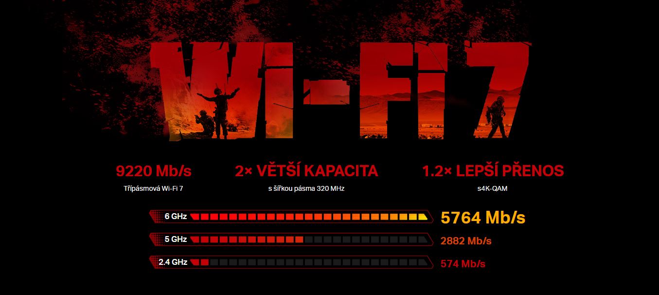 S nadcházející 7. generací WiFi se uvolní dokonalý herní zážitek. Archer GE550 je vybaven Wi-Fi 7 s novým pásmem 6 GHz, šířkou pásma 320 MHz, 4k-QAM, provozem Multi-Link a Multi-RU pro kombinovanou rychlost až 9220 Mb/s