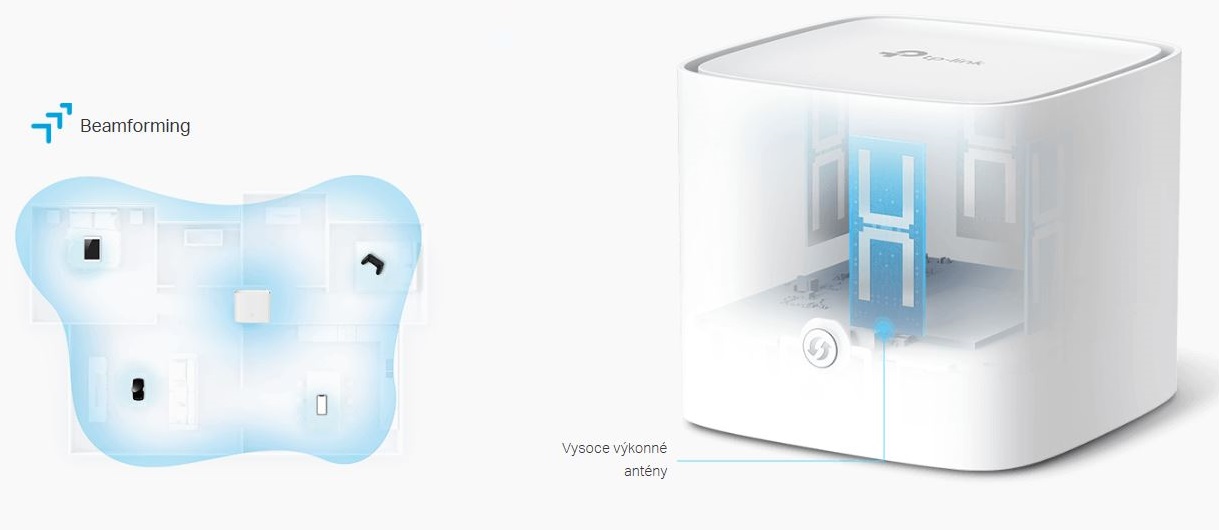 Spojení technologie Beamforming a vysoce výkonných antén přizpůsobí pokrytí WiFi, aby dokonale zapadlo do domácnosti a soustředí sílu signálu ke každému zařízení.