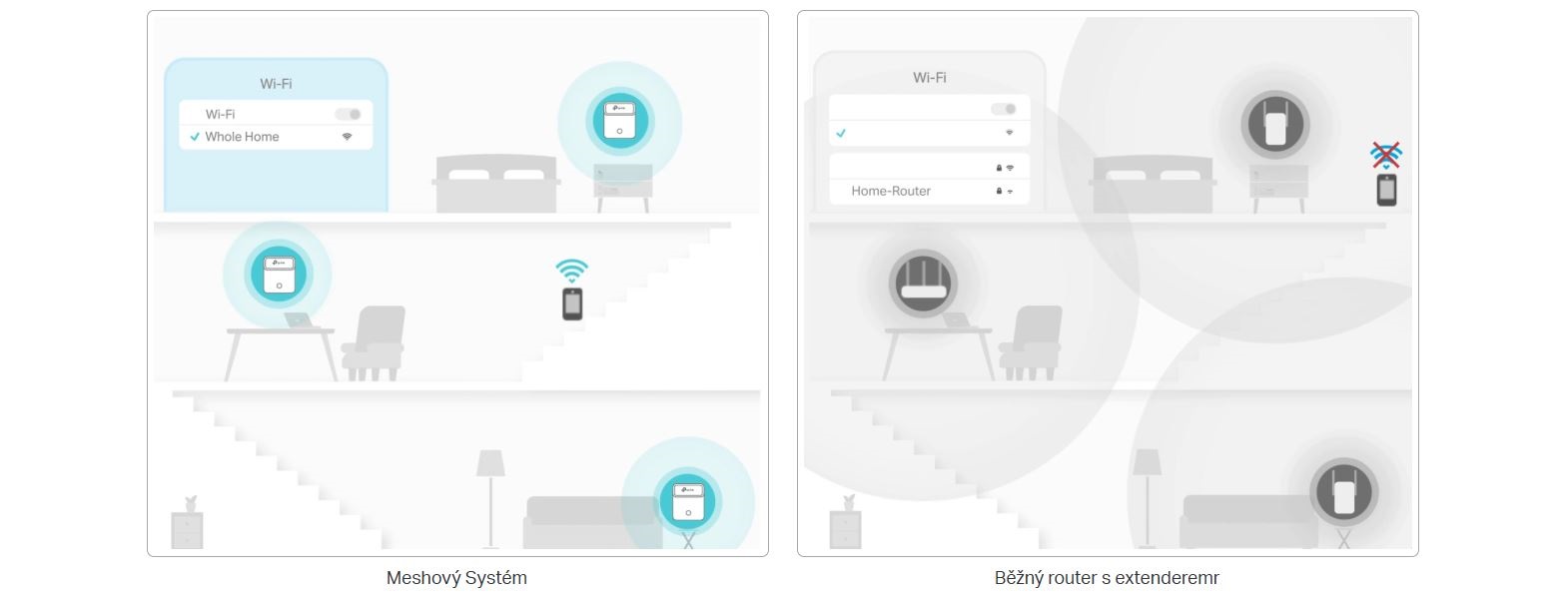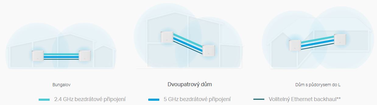 Všechny jednotky spolupracují a tvoří jednu společnou síť. Když se budete pohybovat v domě, vaše mobilní zařízení se automaticky připojí k nejrychlejší jednotce a vytvoří tak skutečně bezvýpadkový Wi-Fi zážitek.