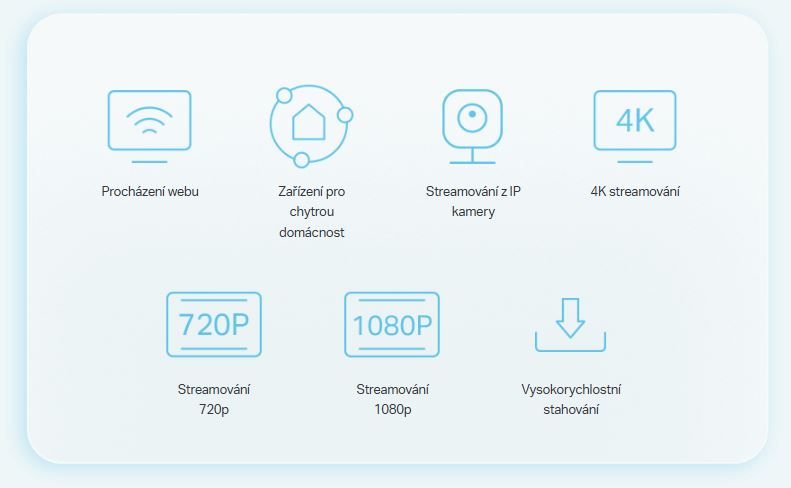 HX220, vyzbrojený technologií WiFi 6, poskytuje vyšší rychlosti až 1,8 Gb/s pro streamování a hraní 8K/4K bez vyrovnávací paměti, a to se všemi připojenými mobilními zařízeními, chytrou domácností a dalšími elektronickými zařízeními.