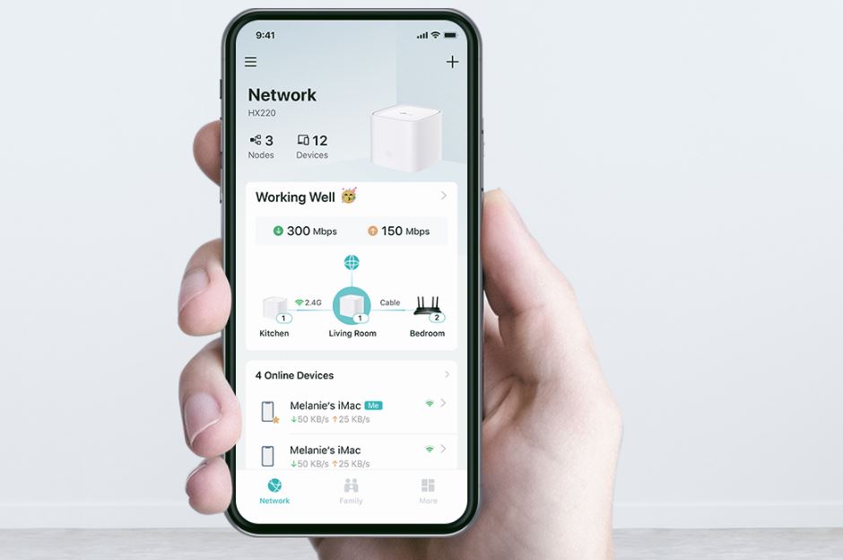 Díky technologii EasyMesh™ poskytuje HX220 silný signál WiFi v každém rohu vašeho domova. Bezdrátová připojení a volitelný Ethernet backhaul spolupracují na propojení každé jednotky a poskytují ještě vyšší rychlosti sítě a skutečně bezproblémové pokrytí. Chcete větší pokrytí? Jednoduše přidejte další HX220, kdykoli budete chtít.