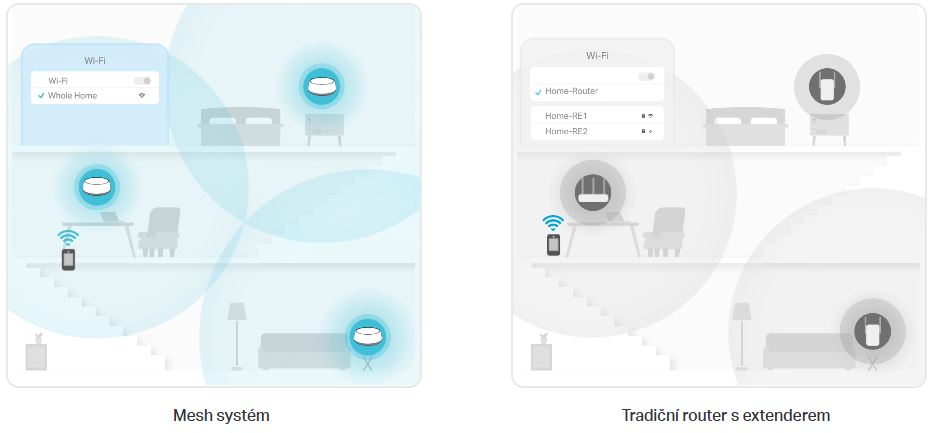 Všechny jednotky spolupracují a tvoří jednu jednotnou síť. Vaše mobilní zařízení se automaticky připojí k nejrychlejší jednotce, když se pohybujete po domě, což vytváří skutečně plynulou Wi-Fi zkušenost.