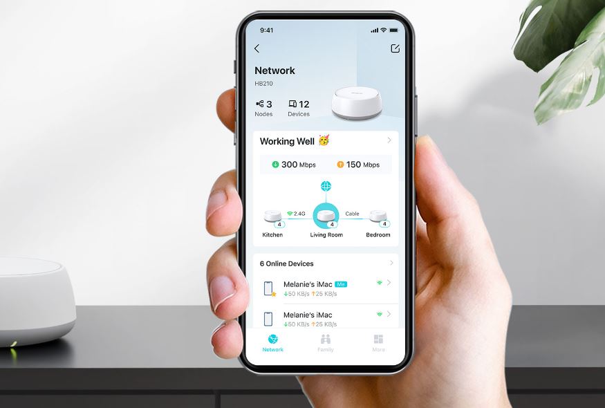 Díky technologii EasyMesh poskytuje HB210 silný Wi-Fi signál do každého kouta vašeho domova. Kabelová a bezdrátová zpětná linka spolupracují, aby propojily každou jednotku a zajistily ještě rychlejší síť a skutečně bezproblémové pokrytí. Potřebujete větší pokrytí? Stačí přidat další jednotku HB210 kamkoli chcete.