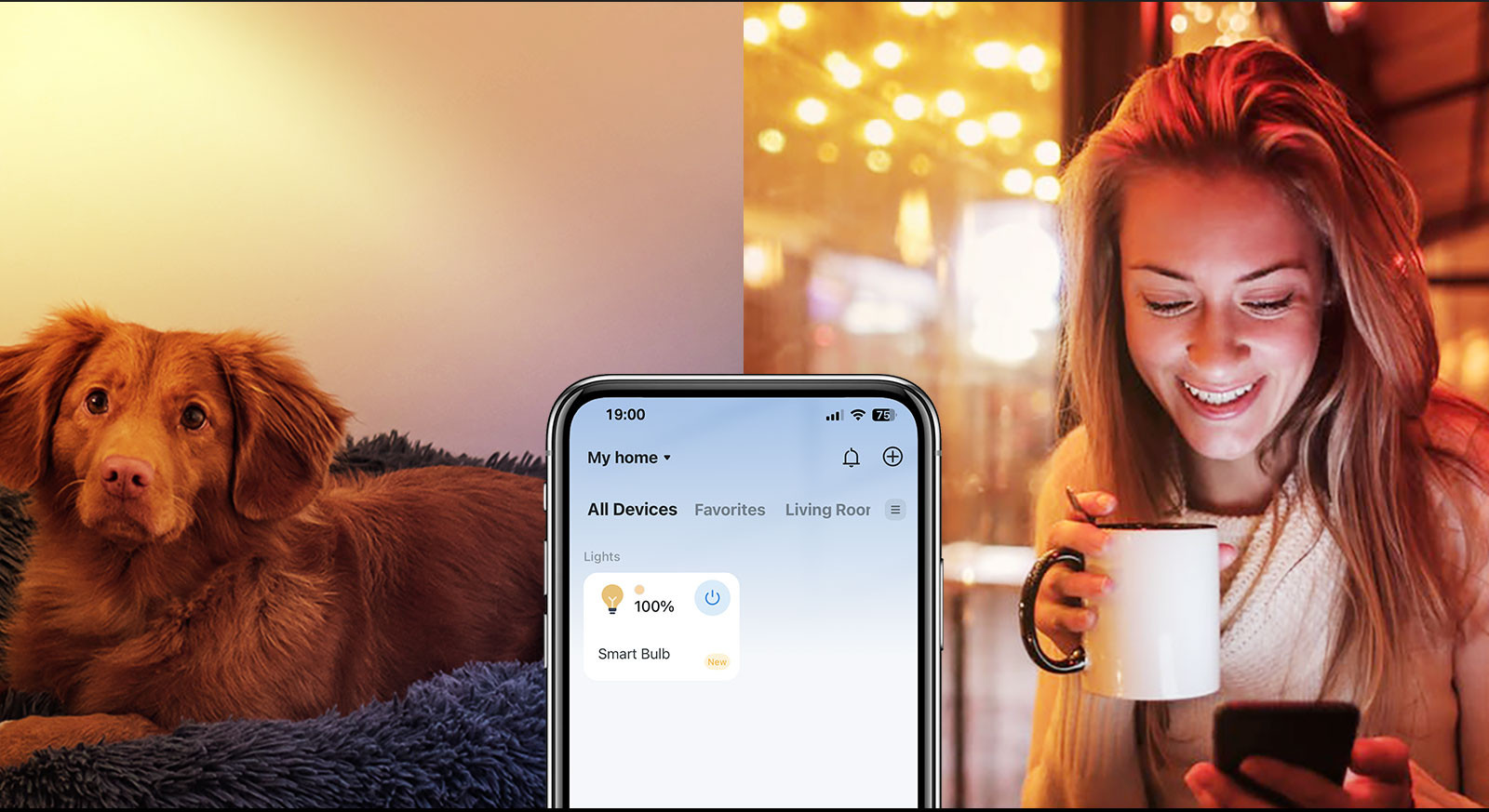 Ovládejte svou chytrou žárovku odkudkoli pomocí aplikace Tapo. Stmívejte, zapínejte a vypínejte žárovky nebo měňte jejich barvy na dálku a na dosah ruky.