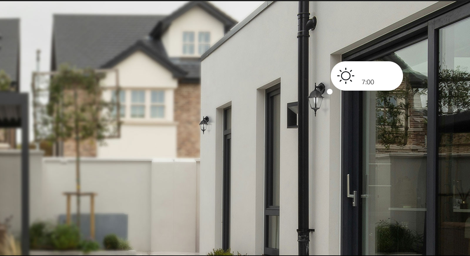 Vytvářejte pravidelné plány a časovače odpočítávání, které se zapínají a vypínají s nastaveným jasem. Pomocí východu a západu slunce jako spouštěčů pro vytvoření inteligentních akcí lze světla automaticky aktivovat podle vašeho časového pásma.