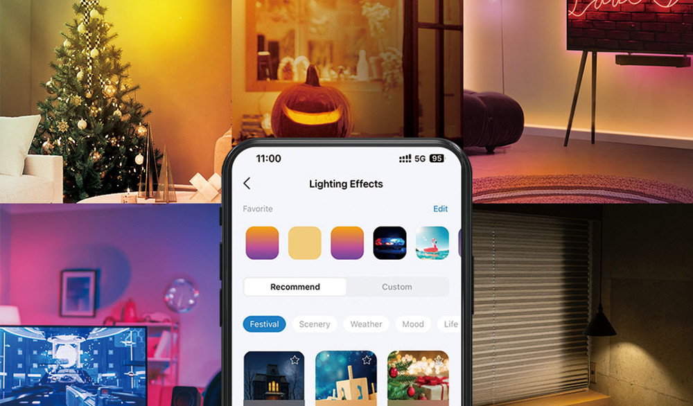 Tapo L430C podporuje více než 70 světelných efektů. Můžete prozkoumat množství atmosférických scén, popustit uzdu své kreativitě díky rozšířenému přizpůsobení a užívat si pohodlí optimalizovaných modulů!