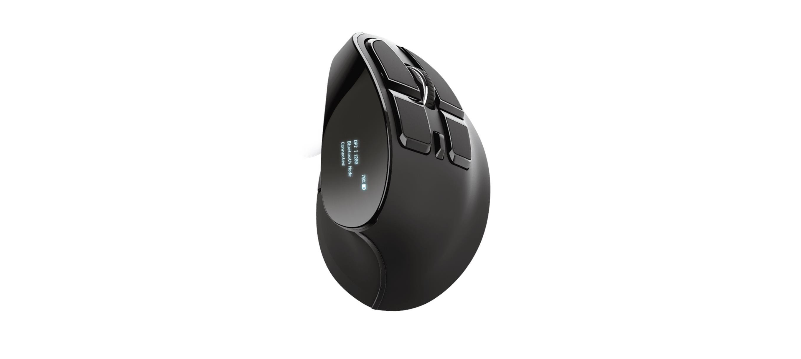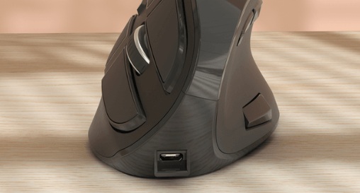 Vertikální ergonomický design umožňuje přirozenější polohu ruky, čímž předchází nebo snižuje namáhání zápěstí a paže.