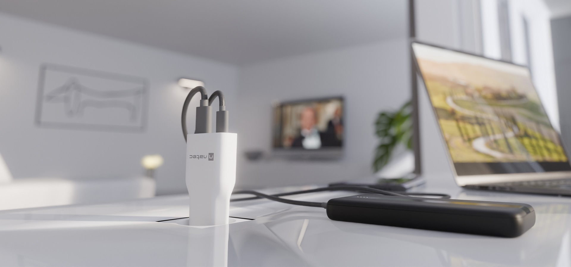 Rychlejší nabíjení a nižší spotřeba energie. Seznamte se s nabíječkou Natec Ribera GaN Slim 20W, se kterou doplníte energii 2 zařízením najednou. Od nynějška to bude trvat ještě kratší dobu díky technologii rychlého nabíjení a vyšší energetické účinnosti, která je výsledkem použití nitridu galia (GaN) - nového, účinnějšího polovodiče, což se pozitivně projevuje i na velikosti nabíječky. Ultrakompaktní a maximálně účinná. To je nabíječka Natec Ribera GaN Slim.