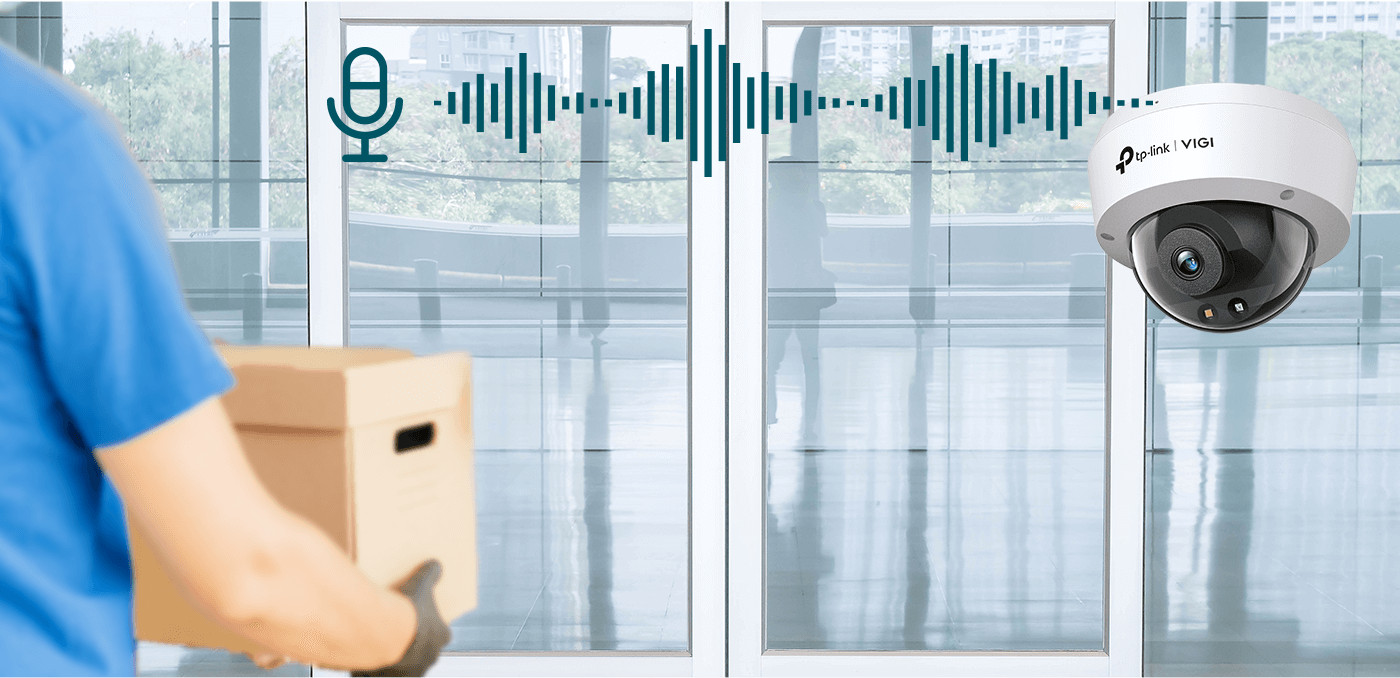 Kamera VIGI obsahuje vestavěný mikrofon pro záznam všeho, co se děje v okruhu 4,5 m od kamery. Získáte tak podrobnější sledování, které vám zajistí větší klid.