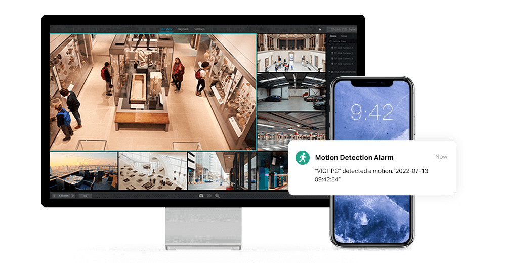V aplikaci VIGI nebo klientovi máte své zabezpečení plně pod kontrolou, kdykoli a kdekoli.