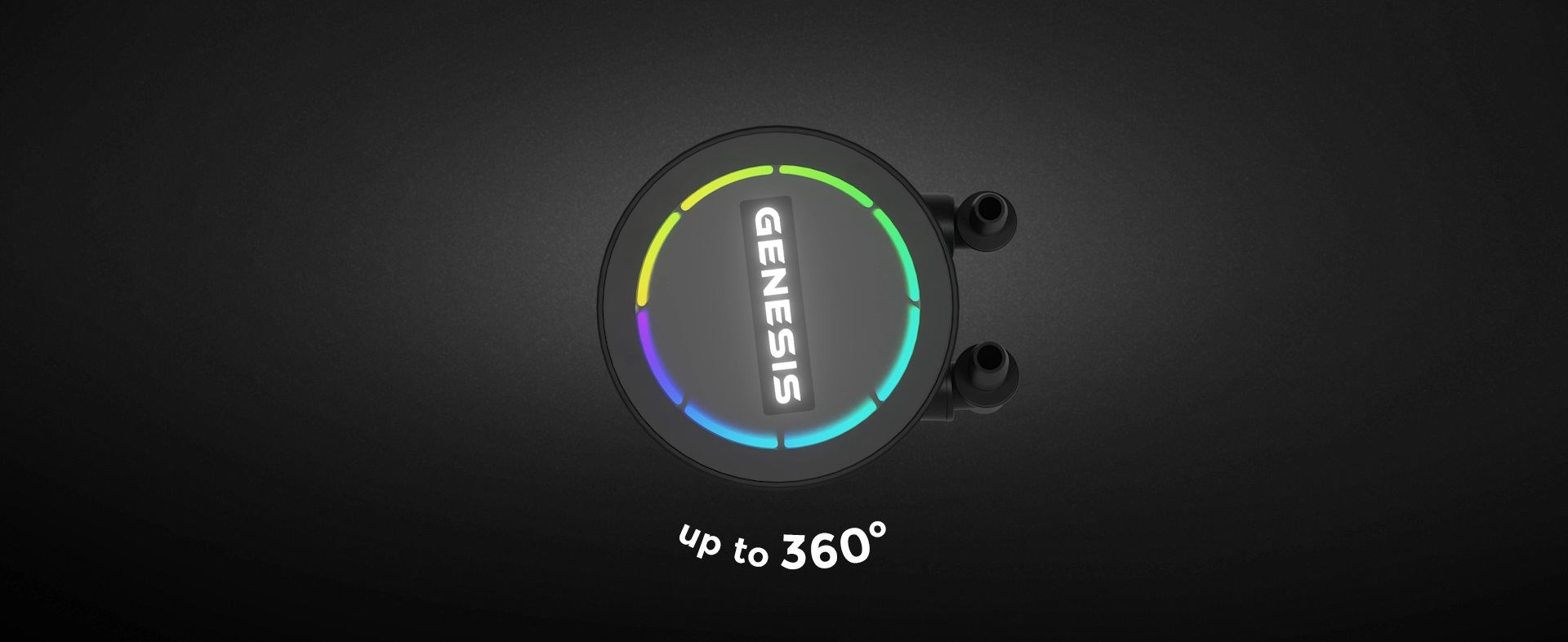 Sami se rozhodněte, jak chcete, aby váš hardware vypadal - decentně podsvícené bílé logo GENESIS na blokovém čerpadle dokonale ladí s montážní polohou celé chladicí jednotky díky možnosti otáčení o 360°, takže vždy vypadá stylově.