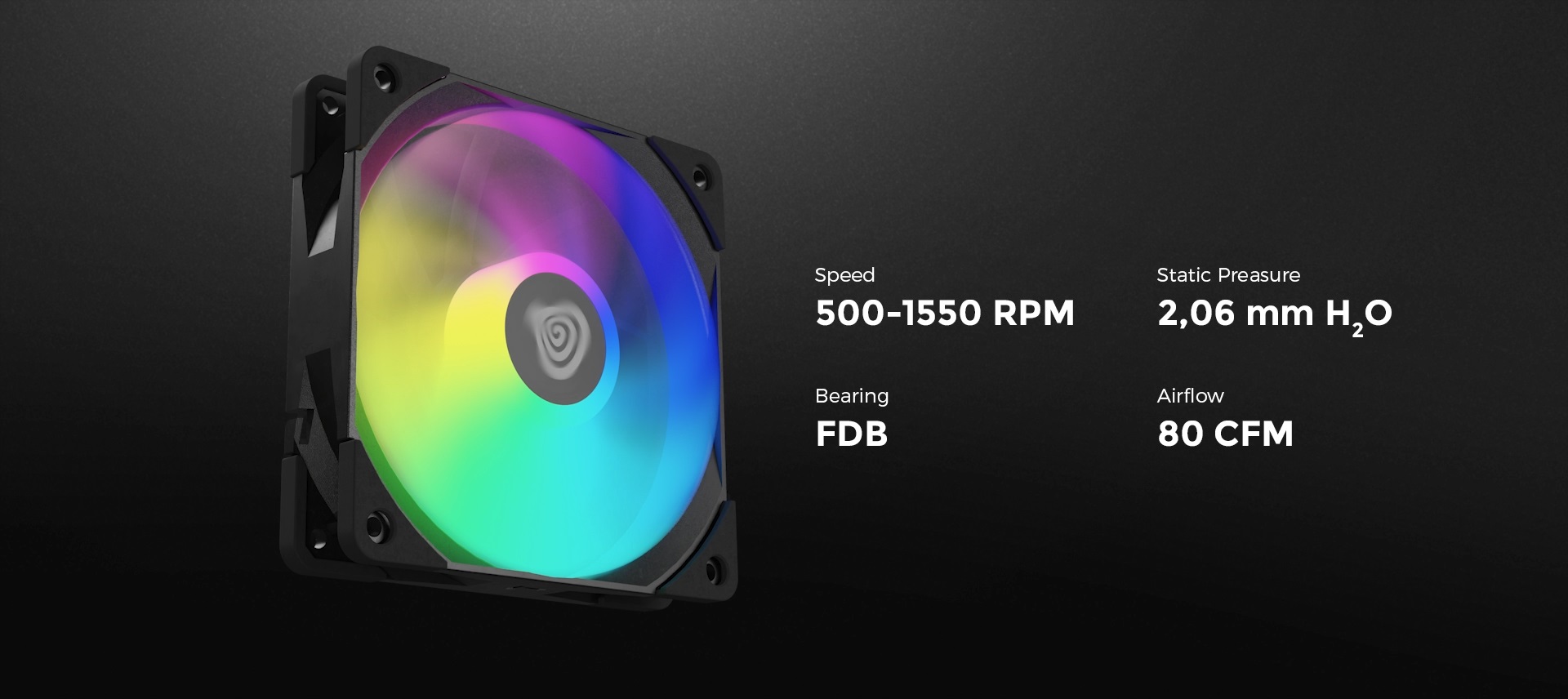 Najdete zde 4pinové ventilátory PWM - s podsvícením ARGB nebo bez něj - s odolnými ložisky FDB a průtokem vzduchu až 80 CFM. To zaručuje maximální výkon bez kompromisů.